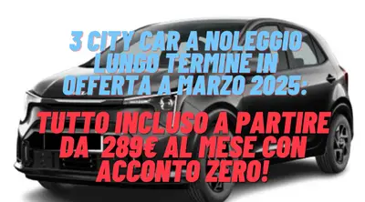 3 city car a noleggio lungo termine in offerta a marzo 2025: TUTTO INCLUSO a soli 289€ al mese con ACCONTO ZERO!