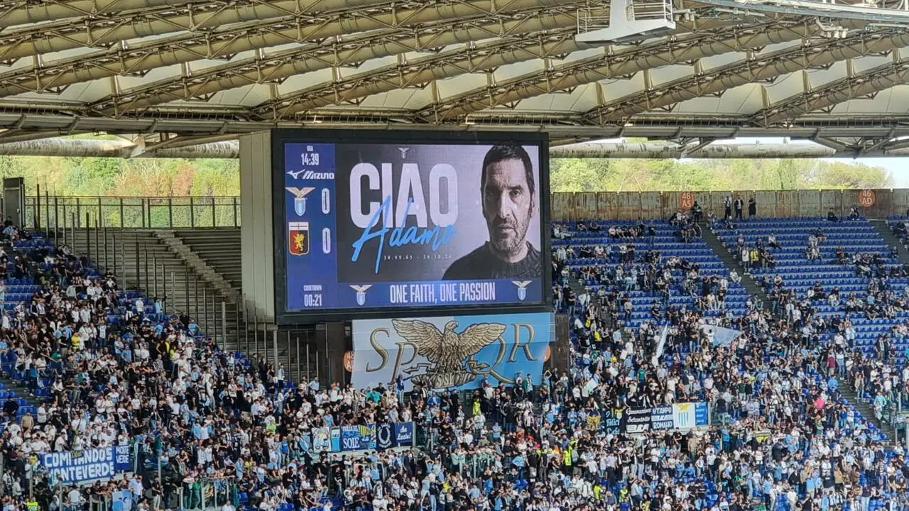 Anche la società biancoceleste ha esposto un messaggio per il Marchese sui maxi schermi dello stadio, accompagnandolo ad una sua foto: “Ciao, Adamo”.