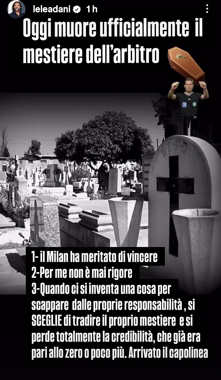 Lele Adani si è espresso duramente sui social riguardo la gestione dell'arbitro Collu durante la gara Milan-Lazio a San Siro, che si è conclusa con la vittoria del club rossonero ed un rigore negato per le aquile.