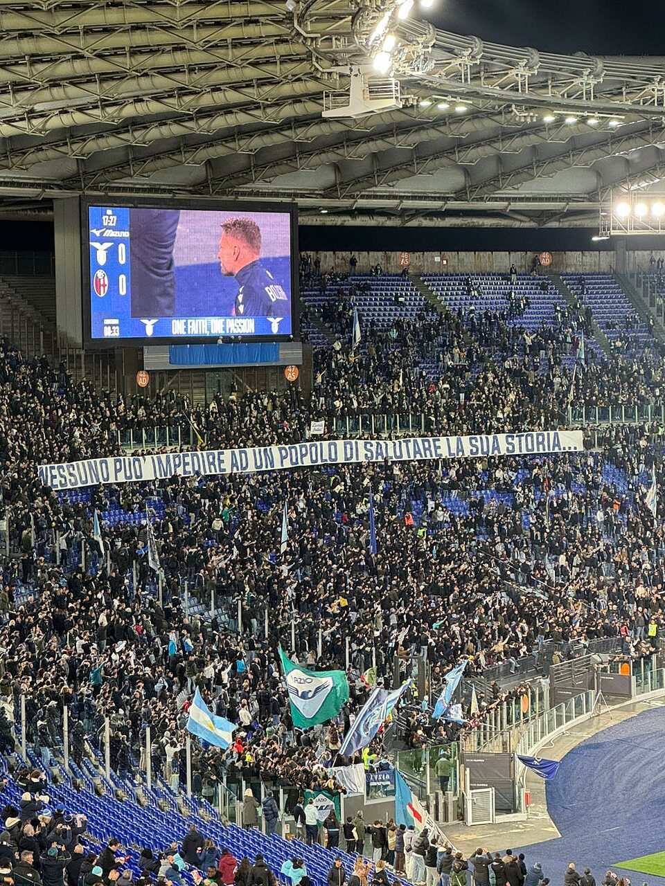 Una giornata speciale quella di oggi per Ciro Immobile, che per la prima volta dopo otto stagioni ha fatto ritorno allo Stadio Olimpico di Roma, ma questa volta da avversario. L'ex bomber biancoceleste è stato accolto tra applausi e cori in suo onore: e proprio nel momento in cui ha salutato i tifosi laziali sotto la Curva Nord, i supporters hanno esposto un commovente striscione: “Nessuno può impedire ad un popolo di salutare la sua storia”.