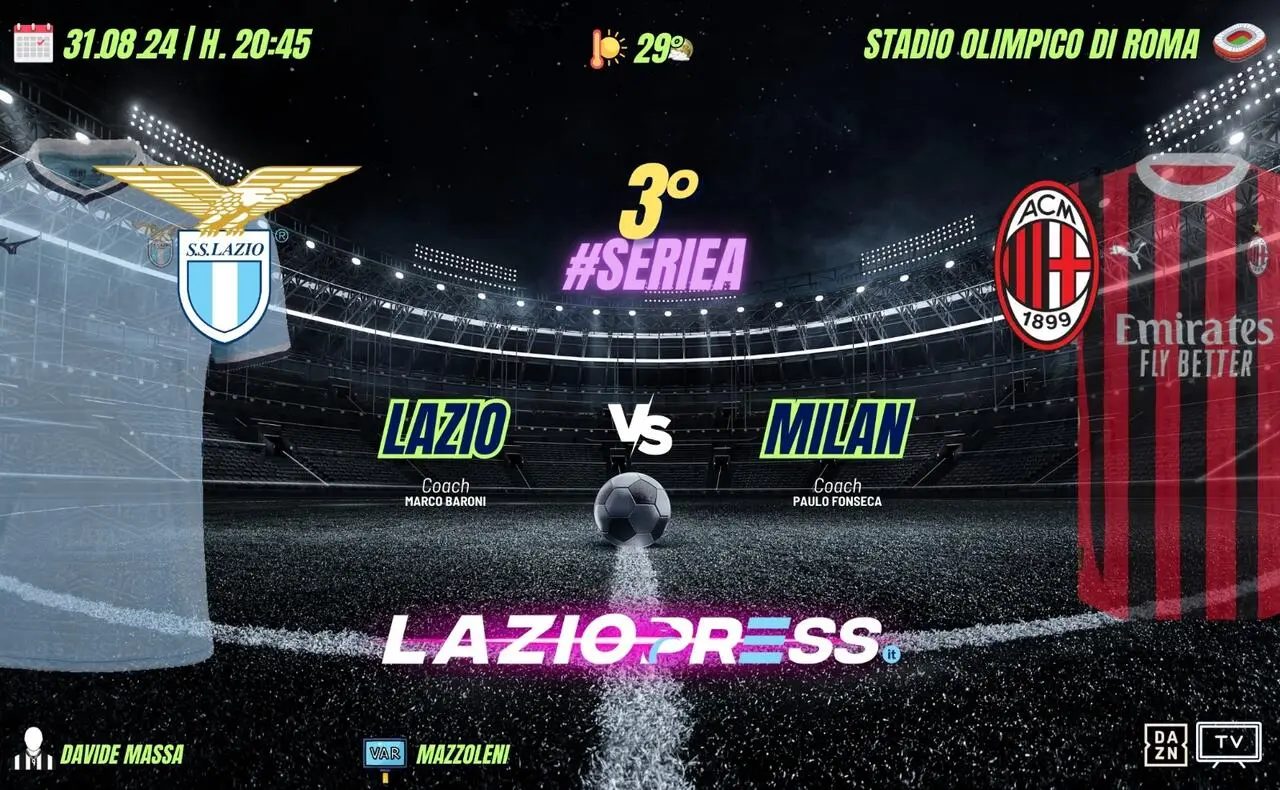 3° SERIE A LIVE | LAZIO-MILAN 2-2 (8' PAVLOVIC, 62' CASTELLANOS, 65' DIA, 72' LEAO)