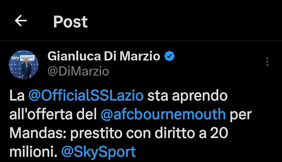 Il mercato invernale ancora non è terminato e le squadre possono ancora vendere o acquistare i propri calciatori con la speranza di rafforzare la propria rosa. Con soltanto circa 10 giorni mancanti per la chiusura delle finestra di mercato, la trattativa tra la Lazio e il Bournemouth per l'acquisto di Christos Mandas, passato da essere titolare indiscusso ad avere un posto soltanto in panchina, continua e, secondo Gianluca Di Marzio e Sky Sport, ci sono stati degli interessanti e sviluppi.