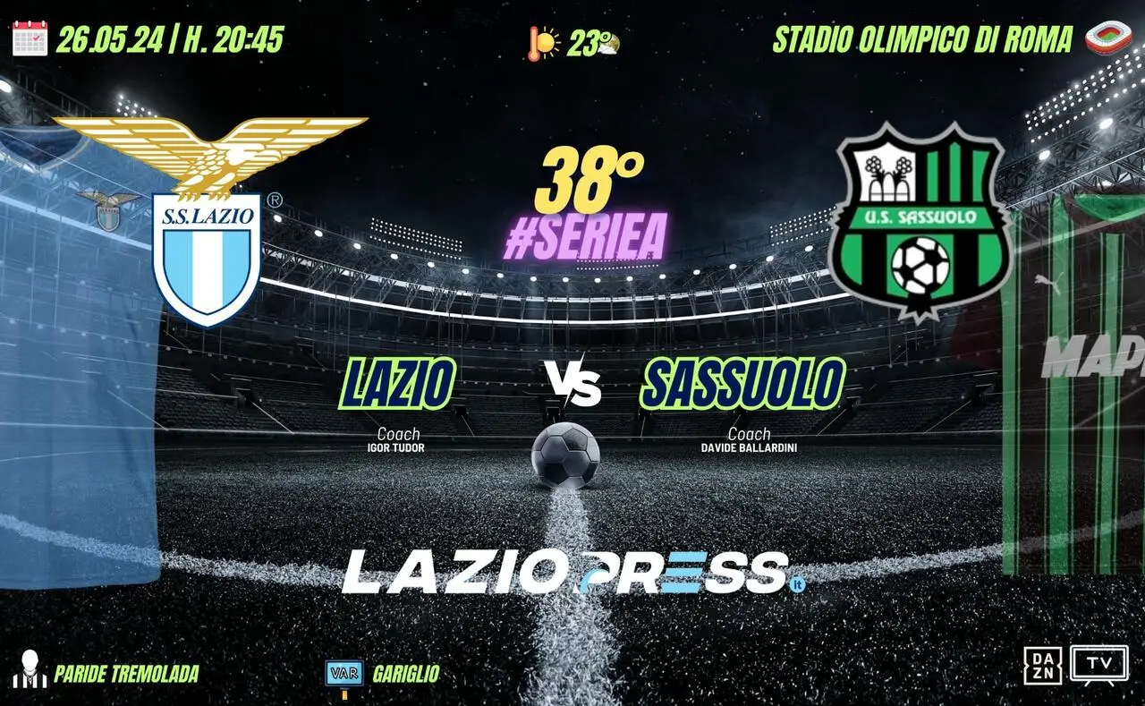 Home / Serie A 38° SERIE A | LIVE LAZIO-SASSUOLO 1-1 (61' Zaccagni, 66' Viti) Redazione LazioPress.it / 26 May 2024, 20:43 Twitter Facebook Whatsapp Telegram Email LIVE LAZIO-SASSUOLO Lazio - Sassuolo Live Score SERIE A | Lazio-Sassuolo, le formazioni ufficiali Seria A, l'Atalanta batte il Torino e condanna la Roma